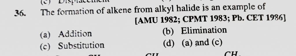 The formation of alkene from alkyl halide is an example of (a) Addition (b) Elimination (c) Substitution (d) (a) and (c) The formation of alkene from alkyl halide is an example of (a) Addition (b) Elimination (c) Substitution (d) (a) and (c) December 13, 2020 Category: Uncategorised (JEE Advanced Physics by BM Sharma + GMP Solutions) , Facebook Messenger WhatsApp Share this:TwitterFacebook Related