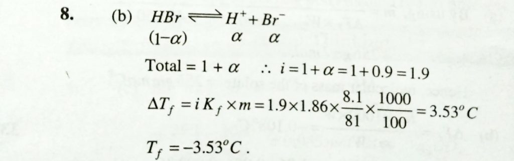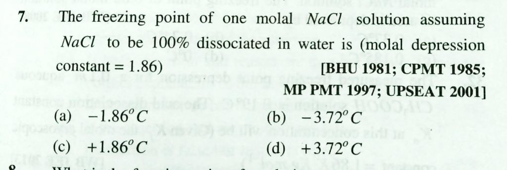 The freezing point of one molal NaCl solution assuming NaCL to be 100 % dissociated inn water is ( molal depression constant = 1.86 ) The freezing point of one molal NaCl solution assuming NaCL to be 100 % dissociated inn water is ( molal depression constant = 1.86 ) December 14, 2020 Category: Uncategorised (JEE Advanced Physics by BM Sharma + GMP Solutions) , Facebook Messenger WhatsApp Share this:TwitterFacebook Related
