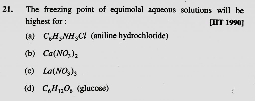 The freezinng point of equimolal aqueous solutions will be highest for : The freezinng point of equimolal aqueous solutions will be highest for : December 14, 2020 Category: Uncategorised (JEE Advanced Physics by BM Sharma + GMP Solutions) , Facebook Messenger WhatsApp Share this:TwitterFacebook Related