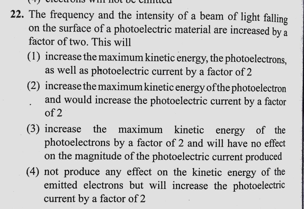 The frequency and the intensity of a beam of light falling on the surface of a photoelectric material are increased by a factor of two . This will The frequency and the intensity of a beam of light falling on the surface of a photoelectric material are increased by a factor of two . This will October 12, 2020 Category: Uncategorised (JEE Advanced Physics by BM Sharma + GMP Solutions) , Facebook Messenger WhatsApp Share this:TwitterFacebook Related