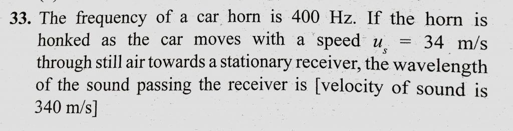 The frequency of a car horn is 400 Hz. If the horn is honked as the car moves with a speed us = 34 m/s through still air towards a stationary receiver, the wavelength of the sound The frequency of a car horn is 400 Hz. If the horn is honked as the car moves with a speed us = 34 m/s through still air towards a stationary receiver the wavelength of the sound November 7, 2020 Category: Uncategorised (JEE Advanced Physics by BM Sharma + GMP Solutions) , Facebook Messenger WhatsApp Share this:TwitterFacebook Related