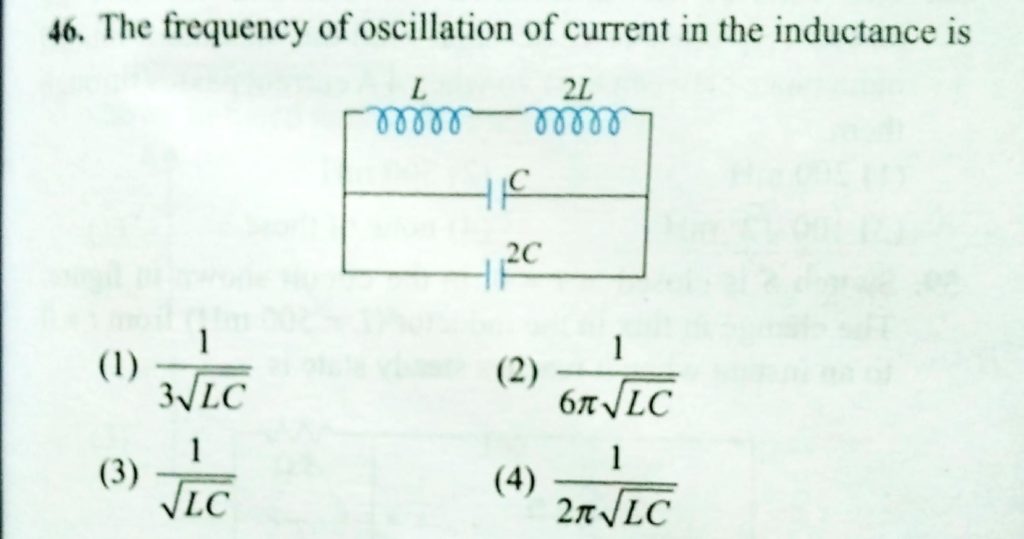 The frequency of oscillation of current in the inductance is (1) 1 / 3 root LC (2) 1/6 pie root LC The frequency of oscillation of current in the inductance is (1) 1 / 3 root LC (2) 1/6 pie root LC October 23, 2020 Category: Uncategorised (JEE Advanced Physics by BM Sharma + GMP Solutions) , Facebook Messenger WhatsApp Share this:TwitterFacebook Related