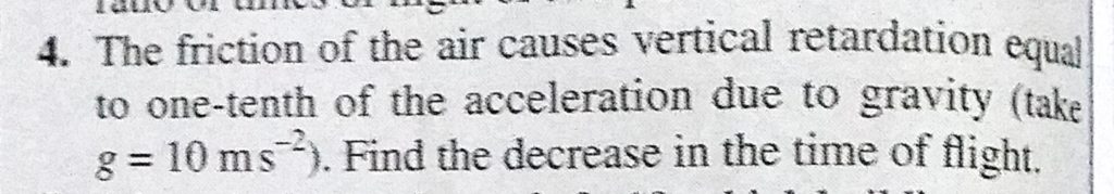 The friction of the air causes vertical retardation equal to one-tenth of the acceleration due to gravity (take g = 10 m/s^2). Find the decrease in the time of flight. The friction of the air causes vertical retardation equal to one-tenth of the acceleration due to gravity (take g = 10 m/s^2). Find the decrease in the time of flight. September 19, 2020 Category: Uncategorised (JEE Advanced Physics by BM Sharma + GMP Solutions) , Facebook Messenger WhatsApp Share this:TwitterFacebook Related