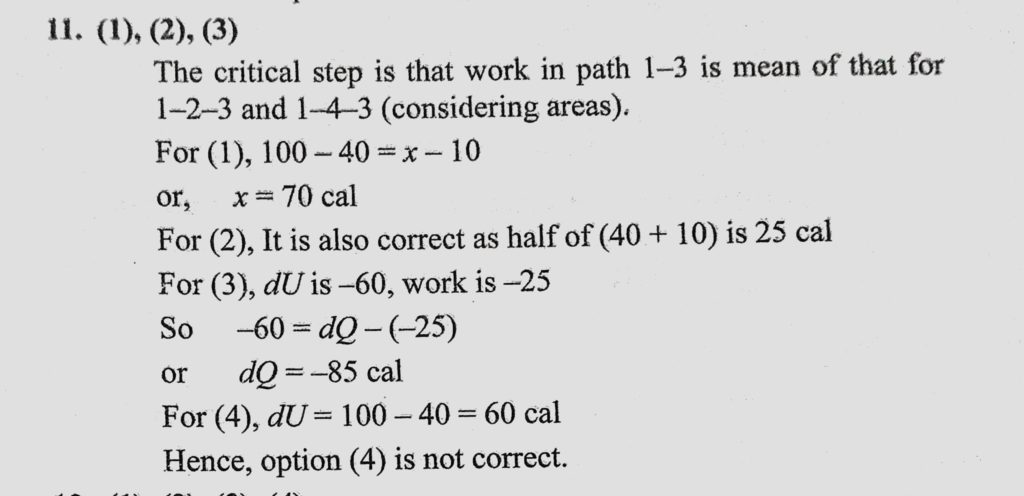 The given figure shows an indicator diagram. During path 1 to 2 to 3, 100 cal is given to the system and 40 cal worth work is done. During path 1 to 4 to 3, the work done is 10 cal. Then 100 cal is given to the system and 40 cal worth work is done. During path 1 to 4 to 3 The given figure shows an indicator diagram. During path 1 to 2 to 3 the work done is 10 cal. Then October 29, 2020 Category: Uncategorised (JEE Advanced Physics by BM Sharma + GMP Solutions) , Facebook Messenger WhatsApp Share this:TwitterFacebook Related