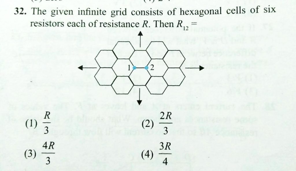 The given infinite grid consits of hexagonal cells of six resistors each of resistors each of resistance R. Then R12 = The given infinite grid consits of hexagonal cells of six resistors each of resistors each of resistance R. Then R12 = November 11, 2020 Category: Uncategorised (JEE Advanced Physics by BM Sharma + GMP Solutions) , Facebook Messenger WhatsApp Share this:TwitterFacebook Related