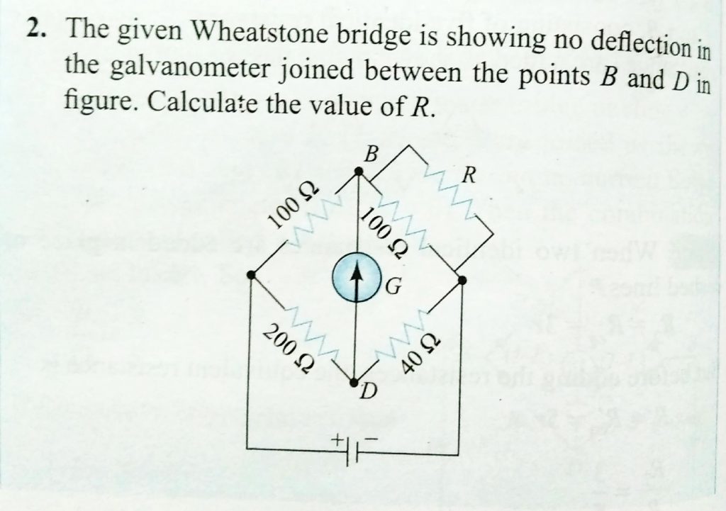 The given Wheatstone bridge is showing no deflection in the galvanometer joined between the points B and D in fig . Calculate the value of R. The given Wheatstone bridge is showing no deflection in the galvanometer joined between the points B and D in fig . Calculate the value of R. November 10, 2020 Category: Uncategorised (JEE Advanced Physics by BM Sharma + GMP Solutions) , Facebook Messenger WhatsApp Share this:TwitterFacebook Related