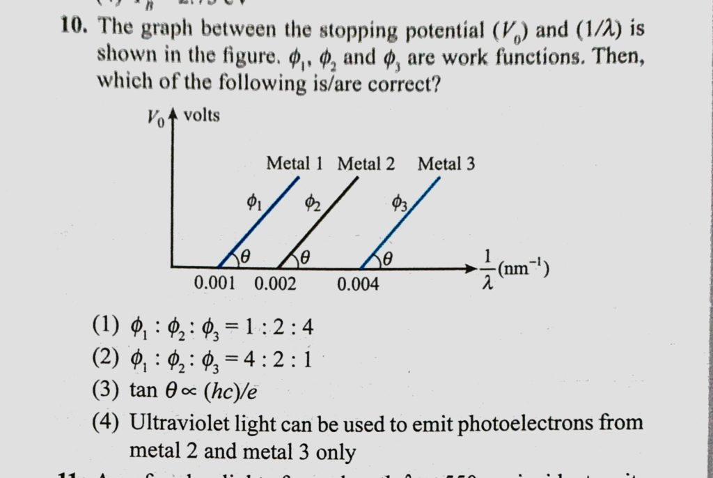 The graph between the stopping potential (V0) and (1/lemda) is shown in the figure. phi 1, phi 2 and phi 3 are work functions. Then, which of the following is/are correct? phi 2 and phi 3 are work functions. Then The graph between the stopping potential (V0) and (1/lemda) is shown in the figure. phi 1 which of the following is/are correct? October 14, 2020 Category: Uncategorised (JEE Advanced Physics by BM Sharma + GMP Solutions) , Facebook Messenger WhatsApp Share this:TwitterFacebook Related