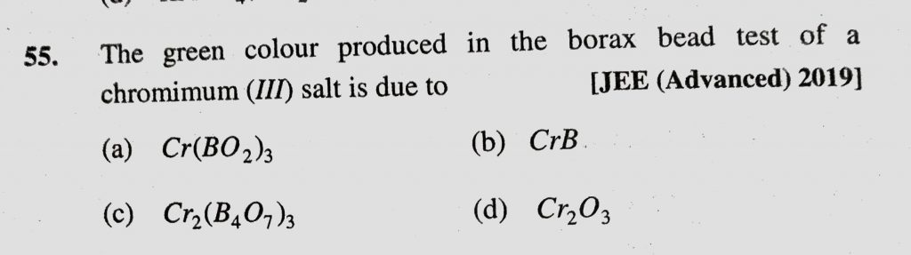 The green colour produced in the borax bead test of a chromium (III) salt is due to The green colour produced in the borax bead test of a chromium (III) salt is due to December 8, 2020 Category: Uncategorised (JEE Advanced Physics by BM Sharma + GMP Solutions) , Facebook Messenger WhatsApp Share this:TwitterFacebook Related