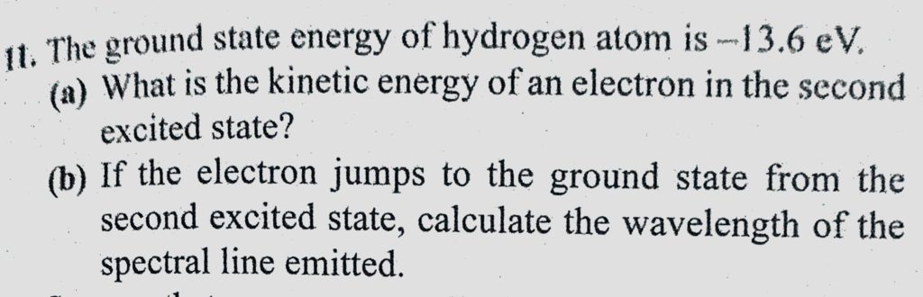 The ground state energy of hydrogen atom is -13.6 eV. (a) What is the kinetic energy of an electron in the second excited state? (b) If the electron jumps to the ground state from the The ground state energy of hydrogen atom is -13.6 eV. (a) What is the kinetic energy of an electron in the second excited state? (b) If the electron jumps to the ground state from the October 15, 2020 Category: Uncategorised (JEE Advanced Physics by BM Sharma + GMP Solutions) , Facebook Messenger WhatsApp Share this:TwitterFacebook Related