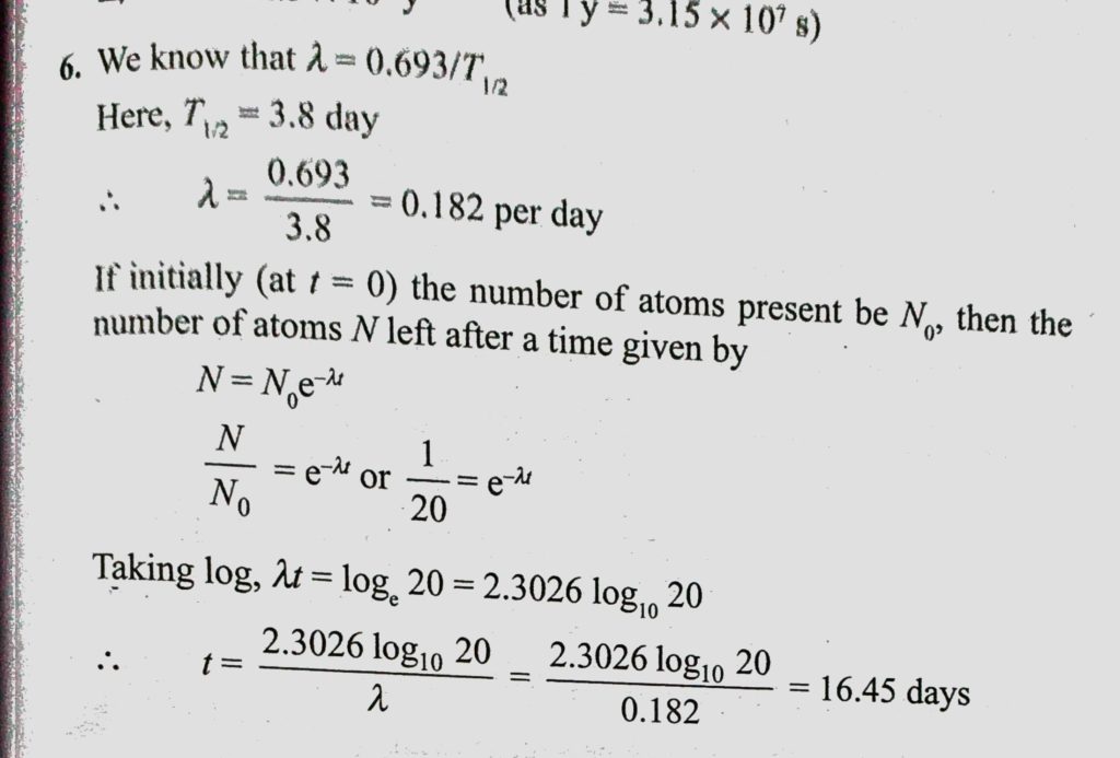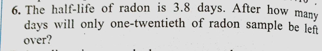 The half-life of radon is 3.8 days. After how many days will only one-twentieth of radon sample be left over ? The half-life of radon is 3.8 days. After how many days will only one-twentieth of radon sample be left over ? October 17, 2020 Category: Uncategorised (JEE Advanced Physics by BM Sharma + GMP Solutions) , Facebook Messenger WhatsApp Share this:TwitterFacebook Related