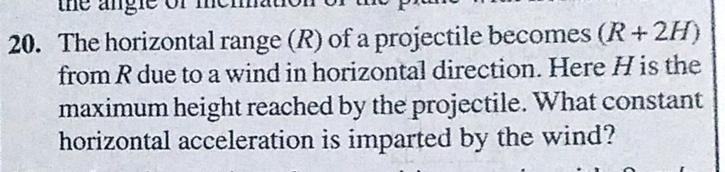 The horizontal range (R) of a projectile becomes (R + 2H) from R due to a wind in horizontal direction. Here H is the maximum height reached by the projectile. What constant horizontal acceleration is imparted and stone A is dropped from the tower. Find out the following: (a) Time of flight of the two stone. Two stones A and B are projected simultaneously from the top of a 100 m high tower. Stone B is projected horizontally with speed 10 m/s September 21, 2020 Category: Uncategorised (JEE Advanced Physics by BM Sharma + GMP Solutions) , Facebook Messenger WhatsApp Share this:TwitterFacebook Related