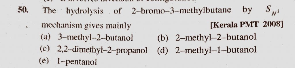 The hydrolysis fo 2-bromo-3-methylbutane by SN1 mechanism gives mainly (a) 3-methyl-2-butanol (b) 2-methyl -2-butanol (c) 2,2-dimethyl -2-proopanol 2-dimethyl -2-proopanol The hydrolysis fo 2-bromo-3-methylbutane by SN1 mechanism gives mainly (a) 3-methyl-2-butanol (b) 2-methyl -2-butanol (c) 2 February 8, 2021 Category: Uncategorised (JEE Advanced Physics by BM Sharma + GMP Solutions) , Facebook Messenger WhatsApp Share this:TwitterFacebook Related