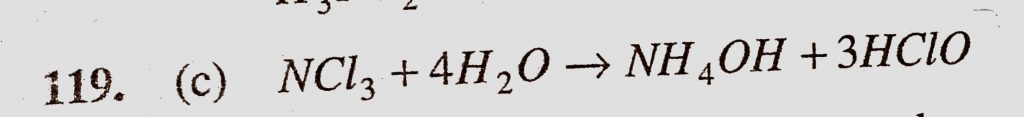 The hydrolysis of NCl3 by water produces (a) NH2OH and HOCl (b) NH2NH2 and HCl (c) NH4OH and HOCl The hydrolysis of NCl3 by water produces (a) NH2OH and HOCl (b) NH2NH2 and HCl (c) NH4OH and HOCl November 22, 2020 Category: Uncategorised (JEE Advanced Physics by BM Sharma + GMP Solutions) , Facebook Messenger WhatsApp Share this:TwitterFacebook Related