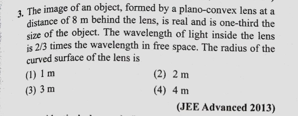 The image of an object, formed by a plano-convex lens at a distance of 8 m behind the lens, is real and is one-third the size of the object. The wavelength of light inside the lens formed by a plano-convex lens at a distance of 8 m behind the lens is real and is one-third the size of the object. The wavelength of light inside the lens The image of an object October 9, 2020 Category: Uncategorised (JEE Advanced Physics by BM Sharma + GMP Solutions) , Facebook Messenger WhatsApp Share this:TwitterFacebook Related