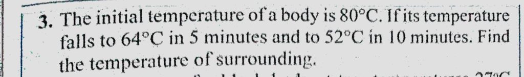 The initial temperature of a body is 80 C. If its temperature falls to 64 C in 5 minutes and to 52 C in 10 minutes. Find the temperature of surrounding. The initial temperature of a body is 80 C. If its temperature falls to 64 C in 5 minutes and to 52 C in 10 minutes. Find the temperature of surrounding. October 25, 2020 Category: Uncategorised (JEE Advanced Physics by BM Sharma + GMP Solutions) , Facebook Messenger WhatsApp Share this:TwitterFacebook Related