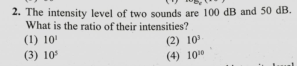 The intensity level of two sounds are 100 dB and 50 dB. What is the ratio of their intensities ? The intensity level of two sounds are 100 dB and 50 dB. What is the ratio of their intensities ? November 7, 2020 Category: Uncategorised (JEE Advanced Physics by BM Sharma + GMP Solutions) , Facebook Messenger WhatsApp Share this:TwitterFacebook Related