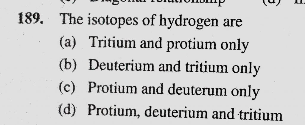 The isotopes of hydrogen are (a) Tritium and protium only (b) Deuterium and tritium only The isotopes of hydrogen are (a) Tritium and protium only (b) Deuterium and tritium only November 28, 2020 Category: Uncategorised (JEE Advanced Physics by BM Sharma + GMP Solutions) , Facebook Messenger WhatsApp Share this:TwitterFacebook Related