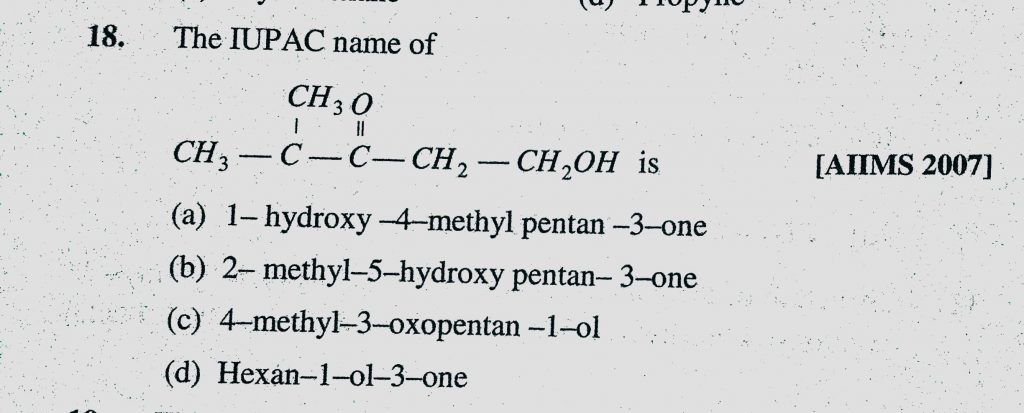 The IUPAC name of (a) 1-hydorxy-4-methyl pentane -3-one (b) 2-methyl-5-hydroxy pentan-3-one The IUPAC name of (a) 1-hydorxy-4-methyl pentane -3-one (b) 2-methyl-5-hydroxy pentan-3-one December 10, 2020 Category: Uncategorised (JEE Advanced Physics by BM Sharma + GMP Solutions) , Facebook Messenger WhatsApp Share this:TwitterFacebook Related
