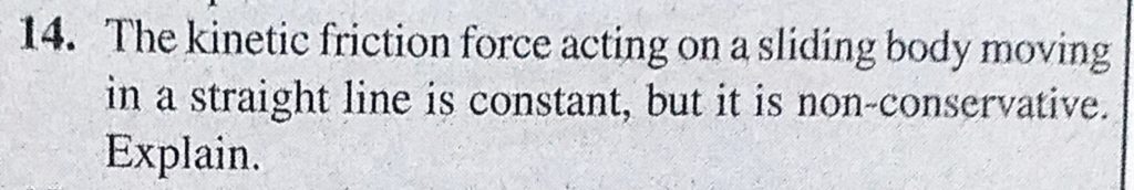 The kinetic friction force acting on a sliding body moving in a straight line is constant, but it is non-conservative. Explain. but it is non-conservative. Explain. The kinetic friction force acting on a sliding body moving in a straight line is constant October 2, 2020 Category: Uncategorised (JEE Advanced Physics by BM Sharma + GMP Solutions) , Facebook Messenger WhatsApp Share this:TwitterFacebook Related