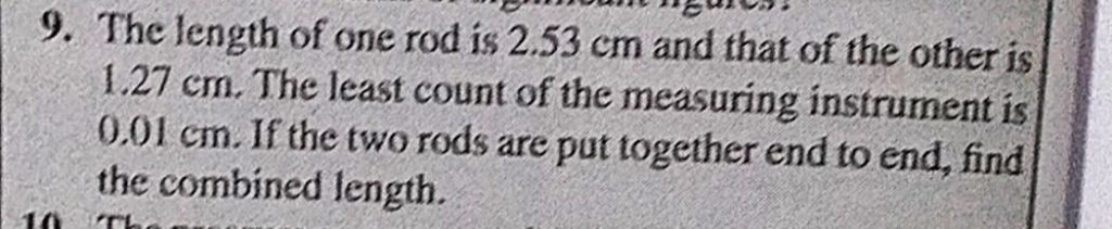 The length of one rod is 2.53 cm and that of the other is 1.27 cm. The least count of the measuring instrument is 0.01 cm. If the two rods are put together end to end , find the combined length. find the combined length. The length of one rod is 2.53 cm and that of the other is 1.27 cm. The least count of the measuring instrument is 0.01 cm. If the two rods are put together end to end September 14, 2020 Category: Uncategorised (JEE Advanced Physics by BM Sharma + GMP Solutions) , Facebook Messenger WhatsApp Share this:TwitterFacebook Related