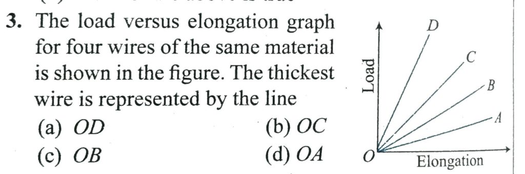 The load versus elongnation graph for four wires of the same material is shown oin the figure. The thickest wire is represented by the line The load versus elongnation graph for four wires of the same material is shown oin the figure. The thickest wire is represented by the line October 9, 2020 Category: Uncategorised (JEE Advanced Physics by BM Sharma + GMP Solutions) , Facebook Messenger WhatsApp Share this:TwitterFacebook Related