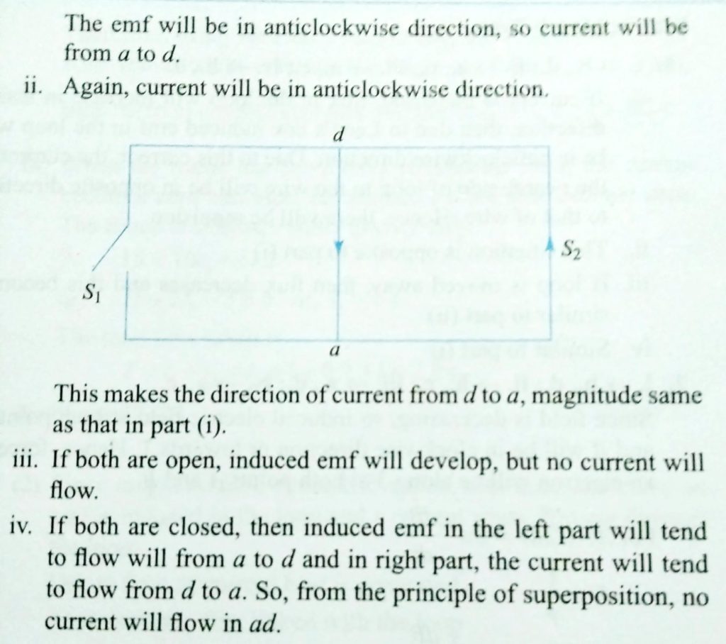 The magnetic field in the cylindrical region shown in figure increases at a constant rate of 10 mT/s . Each side of the square loop abcd and defa has a length of 2 cm and a resistance of 2 ohm. Correctly match the current in the wire ad in four situations as listed in column I with the values given in column II.