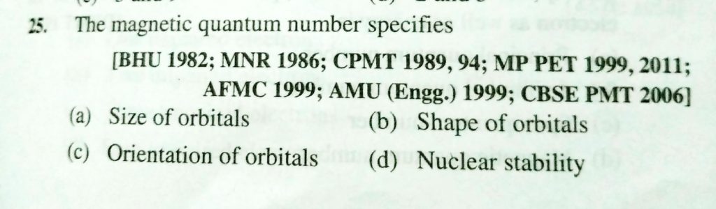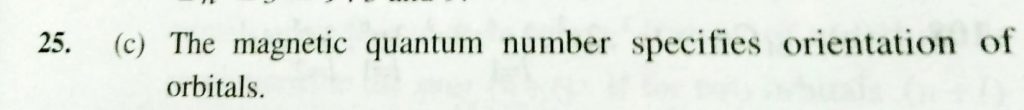 The magnetic quantum number specifies (a) SIze of oribitals (b) shape of orbitals (c) Orientation of orbitals (d) Nuclear stability The magnetic quantum number specifies (a) SIze of oribitals (b) shape of orbitals (c) Orientation of orbitals (d) Nuclear stability November 28, 2020 Category: Uncategorised (JEE Advanced Physics by BM Sharma + GMP Solutions) , Facebook Messenger WhatsApp Share this:TwitterFacebook Related