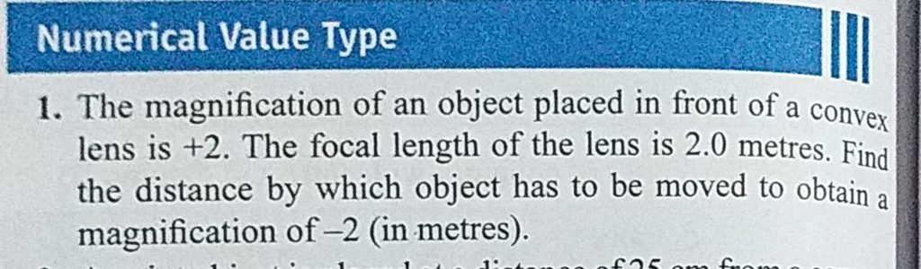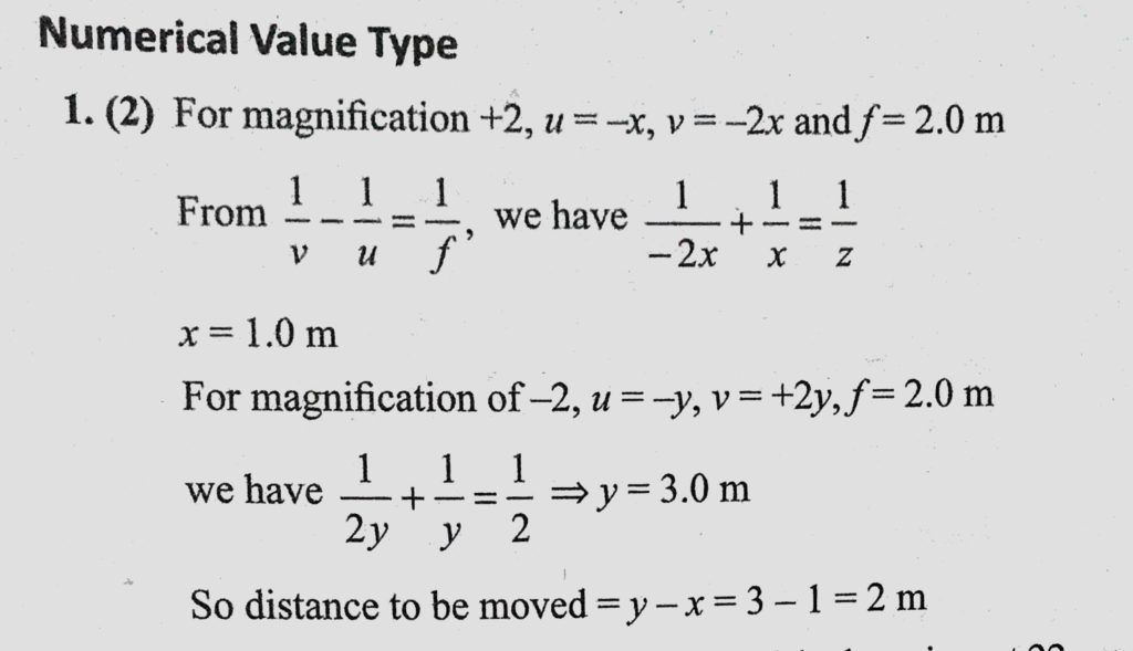 The magnification of an object placed in front of a convex lens is +2. The focal length of the lens is 2.0 metres. Find the distance by which object has to be moved to obtain a magnification of -2 The magnification of an object placed in front of a convex lens is +2. The focal length of the lens is 2.0 metres. Find the distance by which object has to be moved to obtain a magnification of -2 October 9, 2020 Category: Uncategorised (JEE Advanced Physics by BM Sharma + GMP Solutions) , Facebook Messenger WhatsApp Share this:TwitterFacebook Related