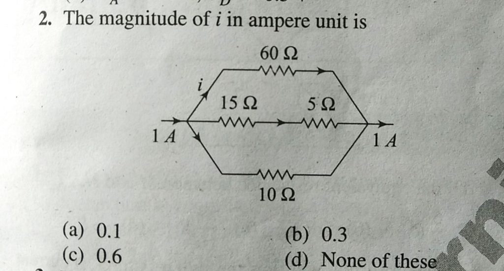 The magnitude of i in ampere unit is a) 0.1 b) 0.3 c) 0.6 d) none of these The magnitude of i in ampere unit is a) 0.1 b) 0.3 c) 0.6 d) none of these September 19, 2020 Category: Uncategorised (JEE Advanced Physics by BM Sharma + GMP Solutions) , Facebook Messenger WhatsApp Share this:TwitterFacebook Related