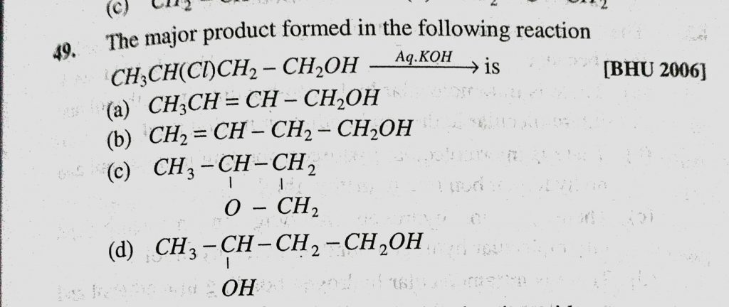 The major product formed in the following reaction CH3CH(Cl)CH2 – CH2OH is (a) CH3CH = CH – CH2OH (b) CH2 =CH – CH2 – CH2OH The major product formed in the following reaction CH3CH(Cl)CH2 - CH2OH is (a) CH3CH = CH - CH2OH (b) CH2 =CH - CH2 - CH2OH February 10, 2021 Category: Uncategorised (JEE Advanced Physics by BM Sharma + GMP Solutions) , Facebook Messenger WhatsApp Share this:TwitterFacebook Related