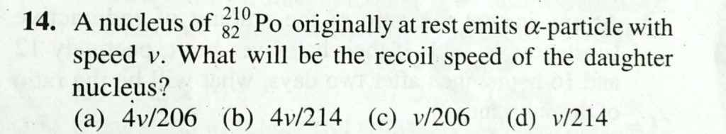 A nucleus of 210 82 PO originally at rest emits alpha particle with speed v. what will be the recoil speed of the daughter nucleus? A nucleus of 210 82 PO originally at rest emits alpha particle with speed v. what will be the recoil speed of the daughter nucleus? September 14, 2020 Category: Uncategorised (JEE Advanced Physics by BM Sharma + GMP Solutions) , Facebook Messenger WhatsApp Share this:TwitterFacebook Related