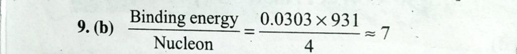 The mass defect for the nucleus of helium is 0.0303 a.m.u. What is the binding energy per nucleon for helium in Me V ? The mass defect for the nucleus of helium is 0.0303 a.m.u. What is the binding energy per nucleon for helium in Me V ? September 14, 2020 Category: Uncategorised (JEE Advanced Physics by BM Sharma + GMP Solutions) , Facebook Messenger WhatsApp Share this:TwitterFacebook Related