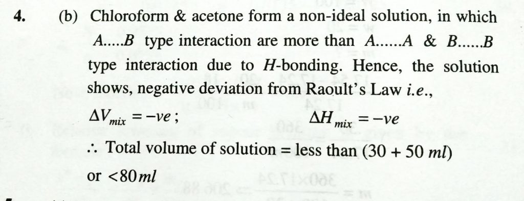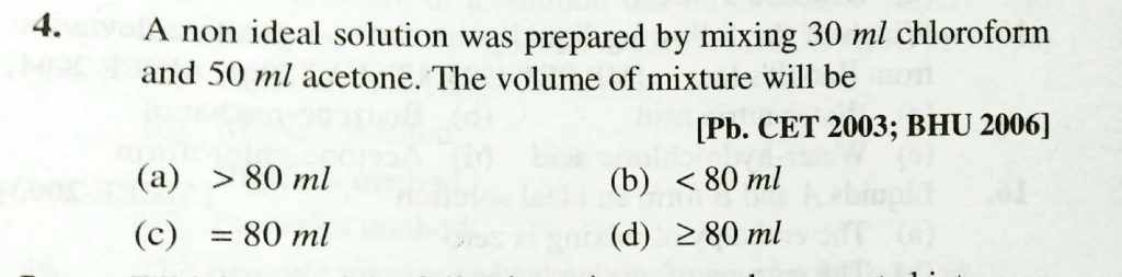 A non ideal solution was prepared by mixing 30 ml chloroform and 50 ml acetone . The volume of mixture will be A non ideal solution was prepared by mixing 30 ml chloroform and 50 ml acetone . The volume of mixture will be December 13, 2020 Category: Uncategorised (JEE Advanced Physics by BM Sharma + GMP Solutions) , Facebook Messenger WhatsApp Share this:TwitterFacebook Related