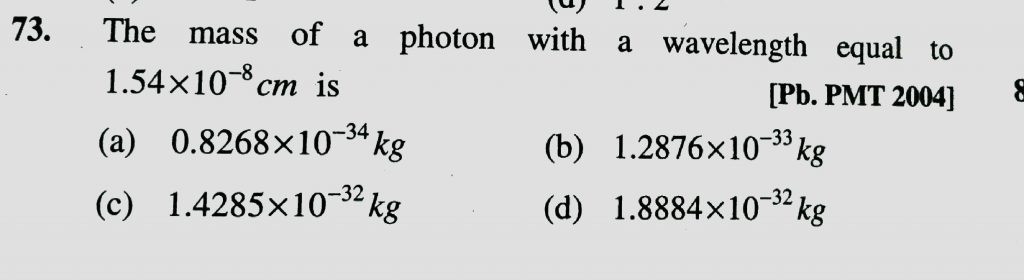 The mass of a photon with a wavelength equal to 1.54 x 10^-8 cm is The mass of a photon with a wavelength equal to 1.54 x 10^-8 cm is November 27, 2020 Category: Uncategorised (JEE Advanced Physics by BM Sharma + GMP Solutions) , Facebook Messenger WhatsApp Share this:TwitterFacebook Related