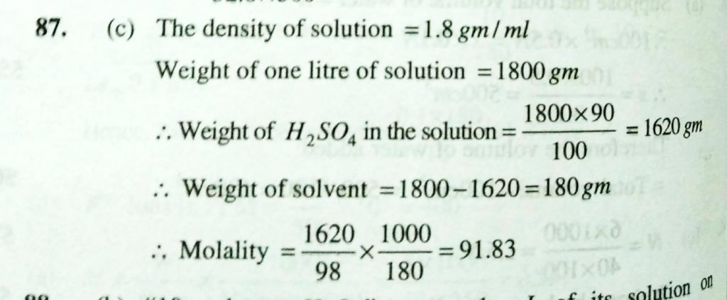 The molarity of 90% H2SO4 solution is [ density = 1.8 gm/ml ] (a) 1.8 (b) 48.4 (c) 91.83 (d) 94.6 The molarity of 90% H2SO4 solution is [ density = 1.8 gm/ml ] (a) 1.8 (b) 48.4 (c) 91.83 (d) 94.6 December 11, 2020 Category: Uncategorised (JEE Advanced Physics by BM Sharma + GMP Solutions) , Facebook Messenger WhatsApp Share this:TwitterFacebook Related