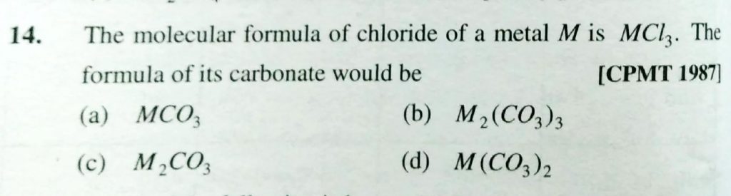 The molecular formula of chloride of a metal M is MCL3 . The formula of its carbonate would be The molecular formula of chloride of a metal M is MCL3 . The formula of its carbonate would be December 1, 2020 Category: Uncategorised (JEE Advanced Physics by BM Sharma + GMP Solutions) , Facebook Messenger WhatsApp Share this:TwitterFacebook Related