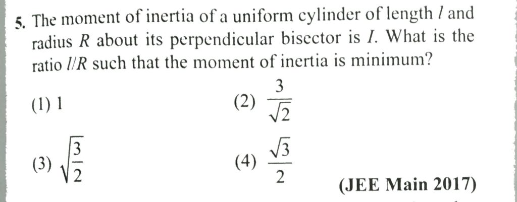 The moment of inertia of a uniform cylinder of length landradiusR about its perpendicular bisector is I. What is the ratio l/R such that the moment of inertia is minimum ? The moment of inertia of a uniform cylinder of length landradiusR about its perpendicular bisector is I. What is the ratio l/R such that the moment of inertia is minimum ? September 28, 2020 Category: Uncategorised (JEE Advanced Physics by BM Sharma + GMP Solutions) , Facebook Messenger WhatsApp Share this:TwitterFacebook Related