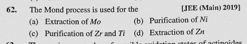 The mond process is used for the (a) Extraction of Mo (b) Purification of Ni (c) Purification of Zr and Ti The mond process is used for the (a) Extraction of Mo (b) Purification of Ni (c) Purification of Zr and Ti December 2, 2020 Category: Uncategorised (JEE Advanced Physics by BM Sharma + GMP Solutions) , Facebook Messenger WhatsApp Share this:TwitterFacebook Related