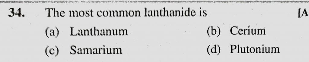 The most common lanthanide is (a) Lanthanum (b) Cerium (c) Samarium (d) Plutonium The most common lanthanide is (a) Lanthanum (b) Cerium (c) Samarium (d) Plutonium November 8, 2020 Category: Uncategorised (JEE Advanced Physics by BM Sharma + GMP Solutions) , Facebook Messenger WhatsApp Share this:TwitterFacebook Related