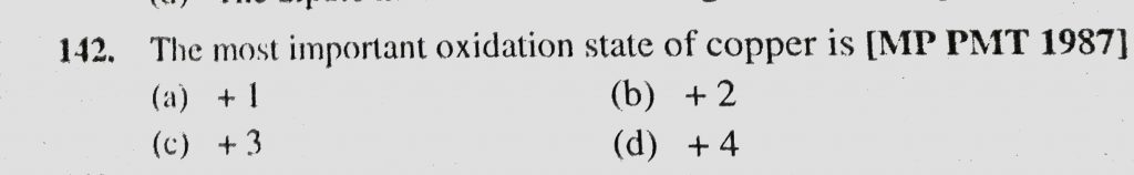 The most important oxidation state of copper is (a) +1 (b) +2 (c) +3 (d) +4 The most important oxidation state of copper is (a) +1 (b) +2 (c) +3 (d) +4 December 1, 2020 Category: Uncategorised (JEE Advanced Physics by BM Sharma + GMP Solutions) , Facebook Messenger WhatsApp Share this:TwitterFacebook Related