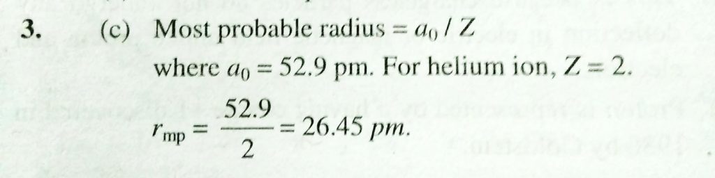The most probable radius (in pm ) for finding the electron in He^+ is (a) 0.0 (b) 52.9 (c) 26.5 (d) 105.8 The most probable radius (in pm ) for finding the electron in He^+ is (a) 0.0 (b) 52.9 (c) 26.5 (d) 105.8 November 26, 2020 Category: Uncategorised (JEE Advanced Physics by BM Sharma + GMP Solutions) , Facebook Messenger WhatsApp Share this:TwitterFacebook Related