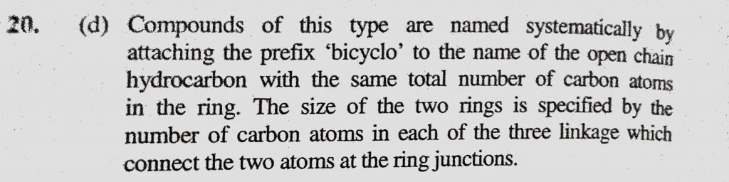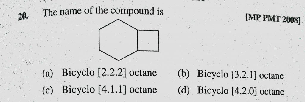 The name of the compound is (a) Bicyclo (2.2.2) octane (b) Bicyclo (3.2.1) octane (c) Bicyclo (4.1.1) octane The name of the compound is (a) Bicyclo (2.2.2) octane (b) Bicyclo (3.2.1) octane (c) Bicyclo (4.1.1) octane December 11, 2020 Category: Uncategorised (JEE Advanced Physics by BM Sharma + GMP Solutions) , Facebook Messenger WhatsApp Share this:TwitterFacebook Related
