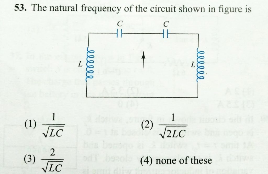 The natural frequency of the circuit shown in the figure is (1) 1 /root LC (ii ) 1 / root 2 LC (iii) 2 /root L The natural frequency of the circuit shown in the figure is (1) 1 /root LC (ii ) 1 / root 2 LC (iii) 2 /root L October 23, 2020 Category: Uncategorised (JEE Advanced Physics by BM Sharma + GMP Solutions) , Facebook Messenger WhatsApp Share this:TwitterFacebook Related