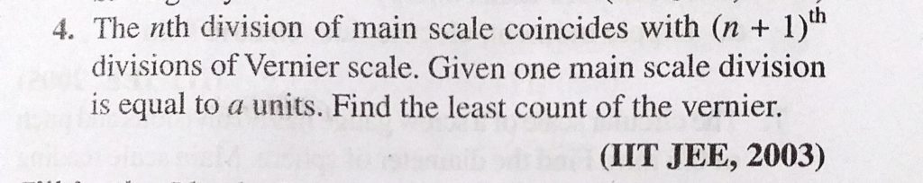 The nth division of main scale coincides with (n + 1)th divisions of Vernier scale. Given one main scale division is equal to a units. Find the least count of the vernier. The nth division of main scale coincides with (n + 1)th divisions of Vernier scale. Given one main scale division is equal to a units. Find the least count of the vernier. September 15, 2020 Category: Uncategorised (JEE Advanced Physics by BM Sharma + GMP Solutions) , Facebook Messenger WhatsApp Share this:TwitterFacebook Related
