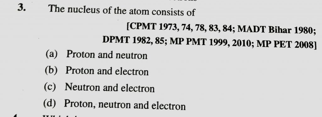 The nucleus of the atom consists of (a) Proton and neutron (b) proton and electron (c) neutron and electron (d) proton , neutron and electron neutron and electron The nucleus of the atom consists of (a) Proton and neutron (b) proton and electron (c) neutron and electron (d) proton November 26, 2020 Category: Uncategorised (JEE Advanced Physics by BM Sharma + GMP Solutions) , Facebook Messenger WhatsApp Share this:TwitterFacebook Related