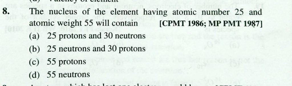 The nucleus of the element having atomic number 25 and atomic weight 55 will contain The nucleus of the element having atomic number 25 and atomic weight 55 will contain November 26, 2020 Category: Uncategorised (JEE Advanced Physics by BM Sharma + GMP Solutions) , Facebook Messenger WhatsApp Share this:TwitterFacebook Related
