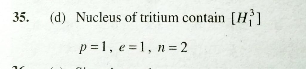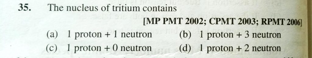 The nucleus opf tritium contains (a) 1 proton +1 neutron (b) 1 proton + 3 neutron (c) 1 proton + 0 neutron (d) 1 proton + 2 neutron The nucleus opf tritium contains (a) 1 proton +1 neutron (b) 1 proton + 3 neutron (c) 1 proton + 0 neutron (d) 1 proton + 2 neutron November 26, 2020 Category: Uncategorised (JEE Advanced Physics by BM Sharma + GMP Solutions) , Facebook Messenger WhatsApp Share this:TwitterFacebook Related