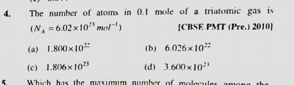The number of atoms in 0.1 mole of a triatomic gas is (Na = 6.02 x 10^23 /mol ) The number of atoms in 0.1 mole of a triatomic gas is (Na = 6.02 x 10^23 /mol ) November 22, 2020 Category: Uncategorised (JEE Advanced Physics by BM Sharma + GMP Solutions) , Facebook Messenger WhatsApp Share this:TwitterFacebook Related