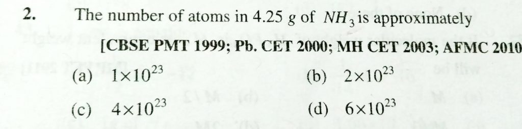 THe number of atoms in 4.25 g of NH3 is approximately (a) 1 x 10^23 (b) 2 x 10^23 (c) 4 x 10^23 (d) 6 x 10^23 THe number of atoms in 4.25 g of NH3 is approximately (a) 1 x 10^23 (b) 2 x 10^23 (c) 4 x 10^23 (d) 6 x 10^23 November 18, 2020 Category: Uncategorised (JEE Advanced Physics by BM Sharma + GMP Solutions) , Facebook Messenger WhatsApp Share this:TwitterFacebook Related