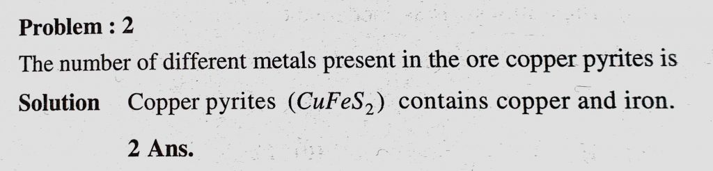 The number of different metals present in the ore copper pyrites is The number of different metals present in the ore copper pyrites is November 12, 2020 Category: Uncategorised (JEE Advanced Physics by BM Sharma + GMP Solutions) , Facebook Messenger WhatsApp Share this:TwitterFacebook Related